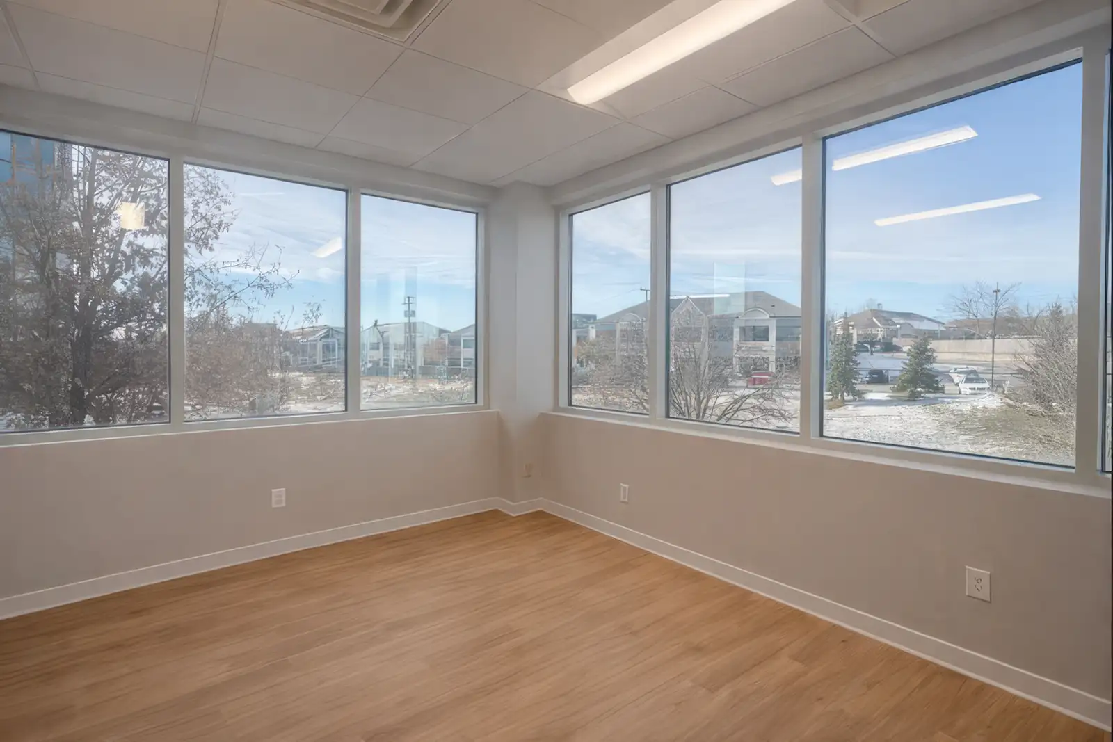 - Suite 150: 4,192 RSF: First Floor corner office wrapped in windows delivered in white box condition for Tenant customization