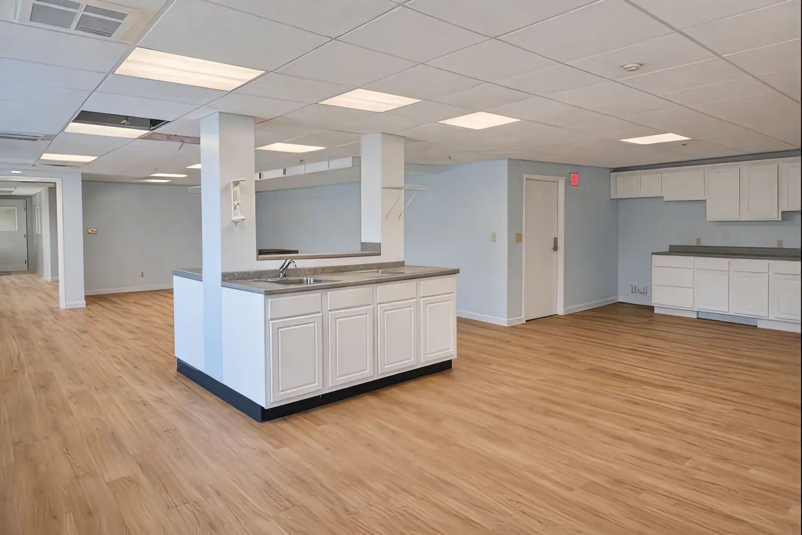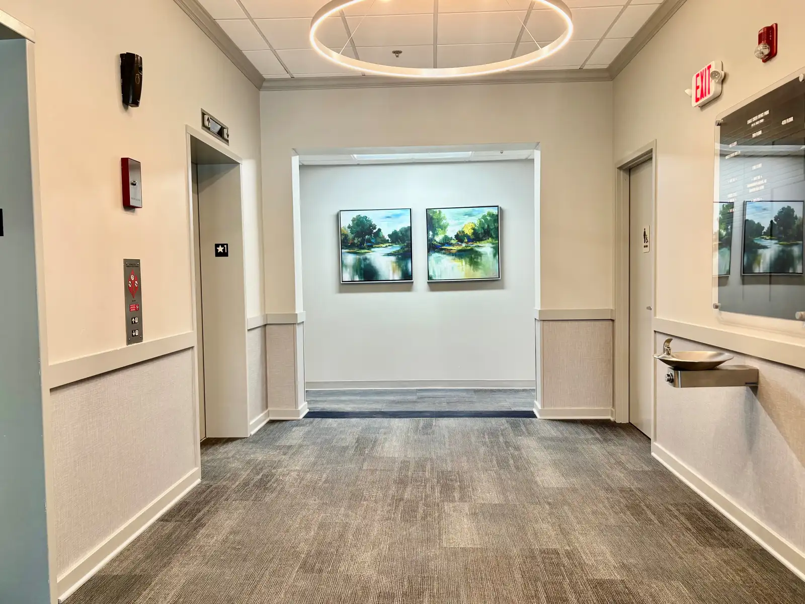 - Class A office spaces with building common areas undergoing renovation