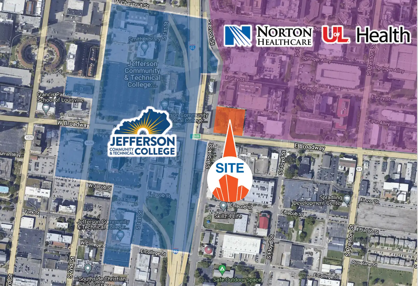 This 1-acre (43,560 SF) land development site is strategically located at the corner of Broadway and Brook Street, in the heart of downtown Louisville’s premier healthcare corridor. Zoned C-2, the site offers exceptional flexibility for a variety of commercial, medical, and mixed-use developments.