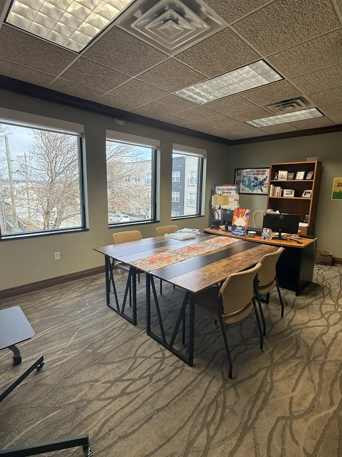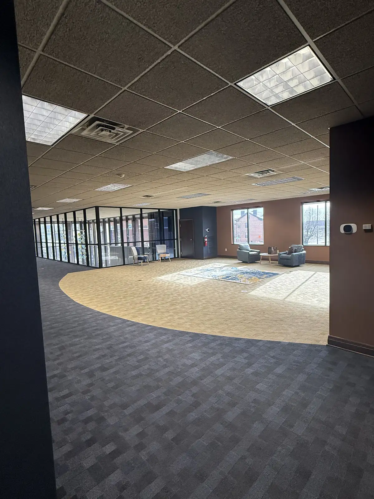 Position your business in one of Downtown New Albany’s most recognizable historic buildings, ideally located on Spring Street between Bank and Third, adjacent to the Carnegie Center. A local landmark since 1988, this second-floor space offers 3,566 SF of highly functional, natural light-filled office space with excellent parking and flexible layout options.