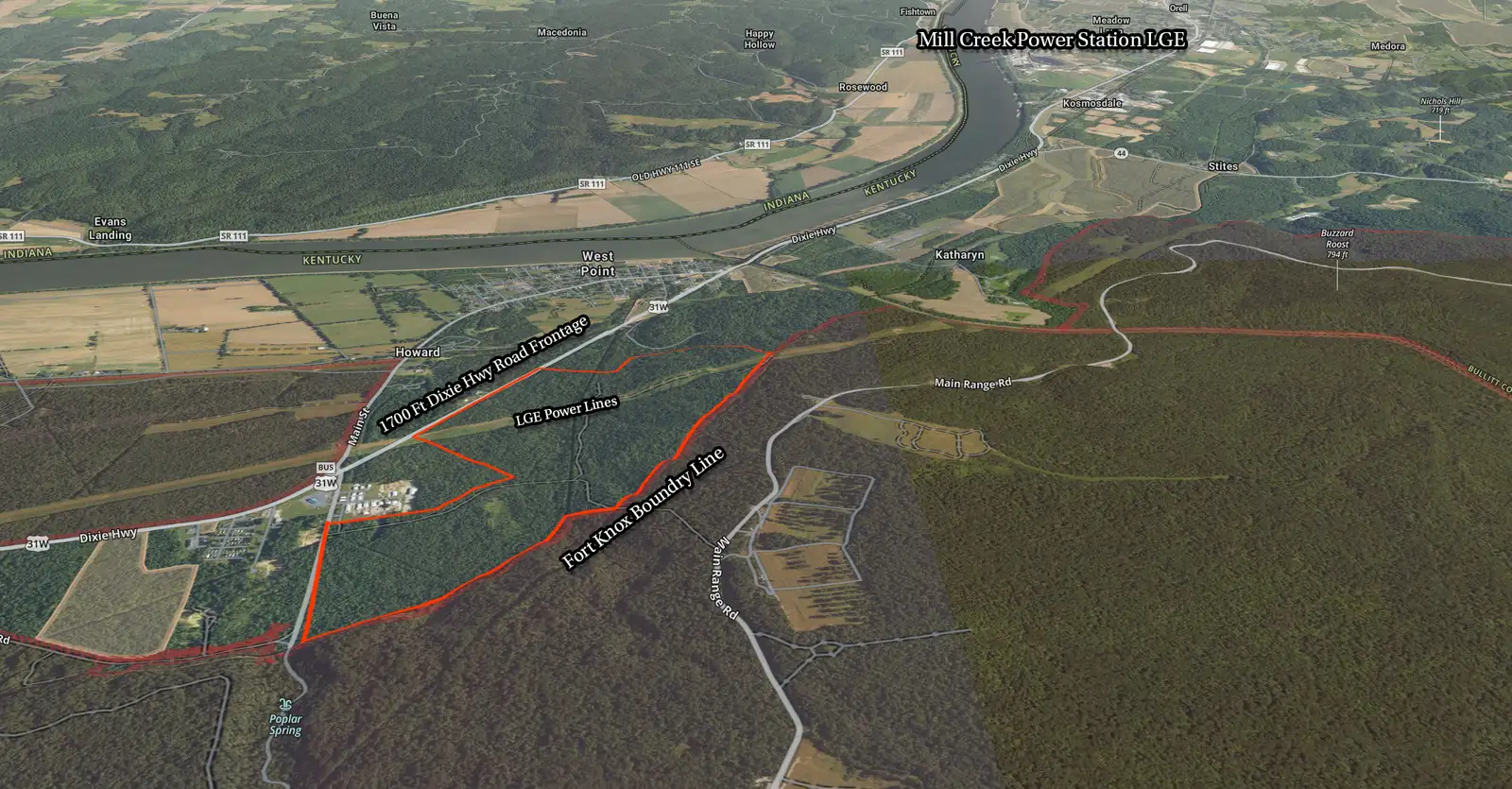 Hoagland Commercial Realtors is pleased to offer this 464 Acre Property that borders Dixie Hwy in West Point, KY. West Point, KY, is situated in Hardin County, KY, near the Salt River. The property is situated 8 Miles from I-265 in Louisville, Kentucky, and 15 Miles from Radcliff, Kentucky. The property borders Fort Knox and has a Main Power Line from LGE running through this property.