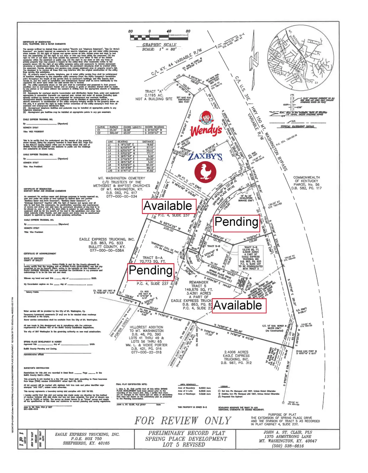 We are pleased to offer Spring Place, a prime retail development in the heart of Mount Washington, KY. This is development is located at the corner of Hwy 31 (US 150) Bardstown Road/Mt Washington Bypass and Hwy 44 (Old Mill Road).