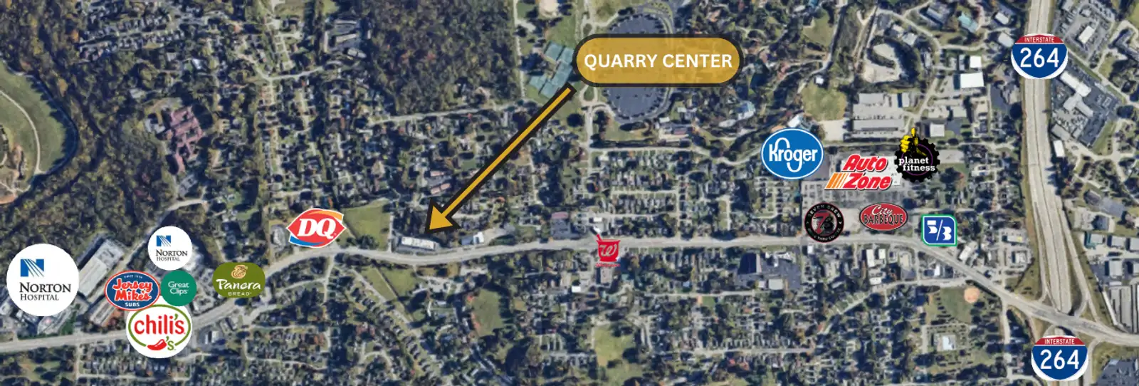 The Quarry Center is a 16,454 SF retail center located along Poplar Level in Louisville, KY. The surrounding area features quality retail anchors and a strong presence of medical/education.