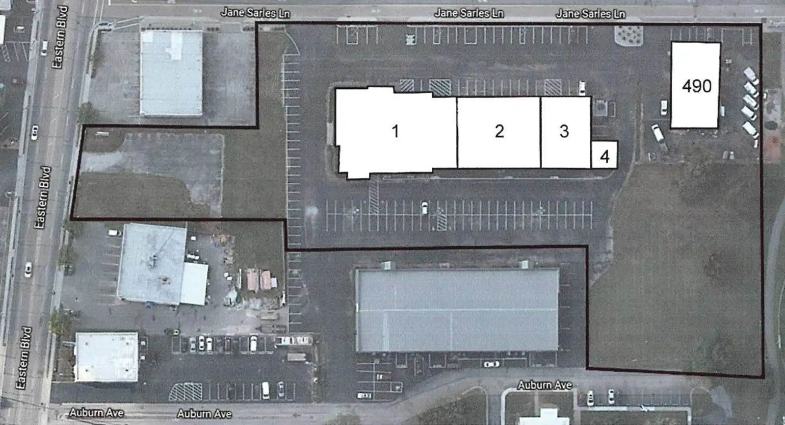 800 SF & 5,000 SF industrial suites available with drive in doors, located in a high-traffic area on Jane Sarles Lane off Eastern Boulevard, less than half a mile from I-65. Vacant lot also available for land lease facing Eastern Boulevard, great for ground lease or build to suit.