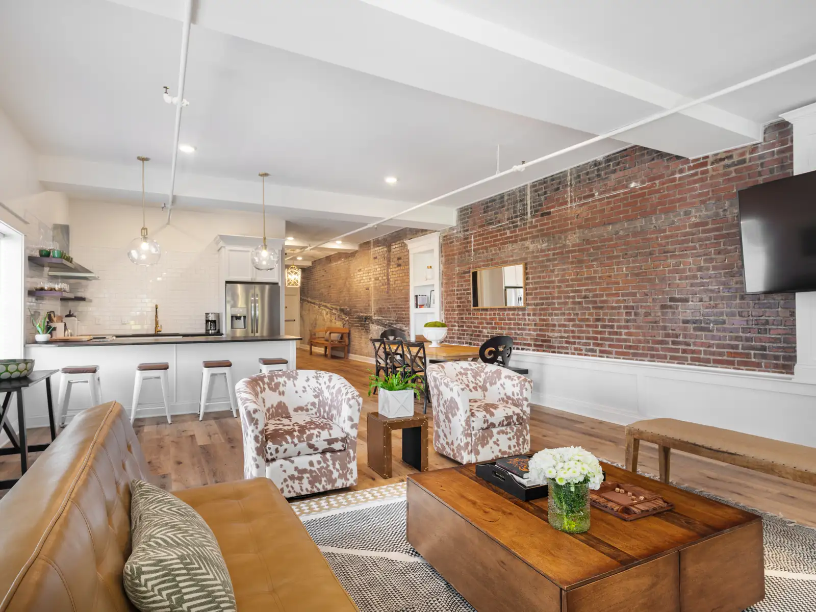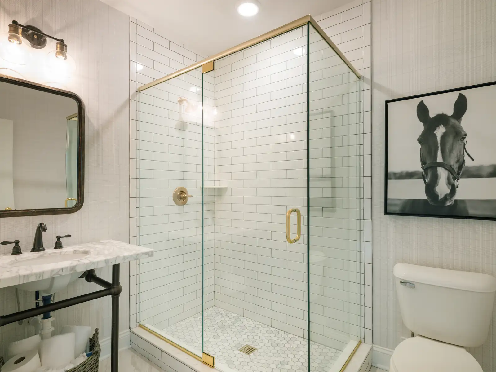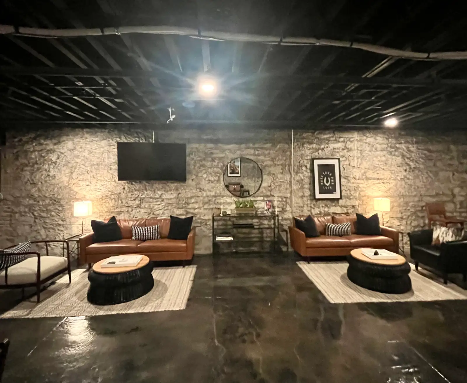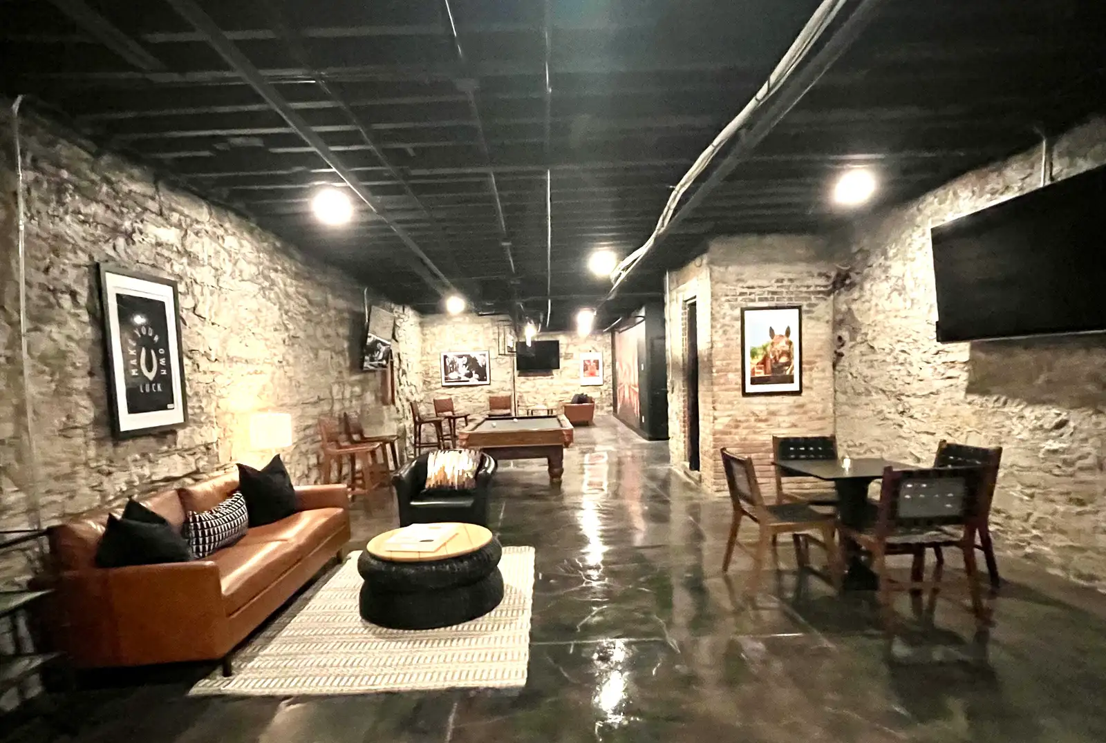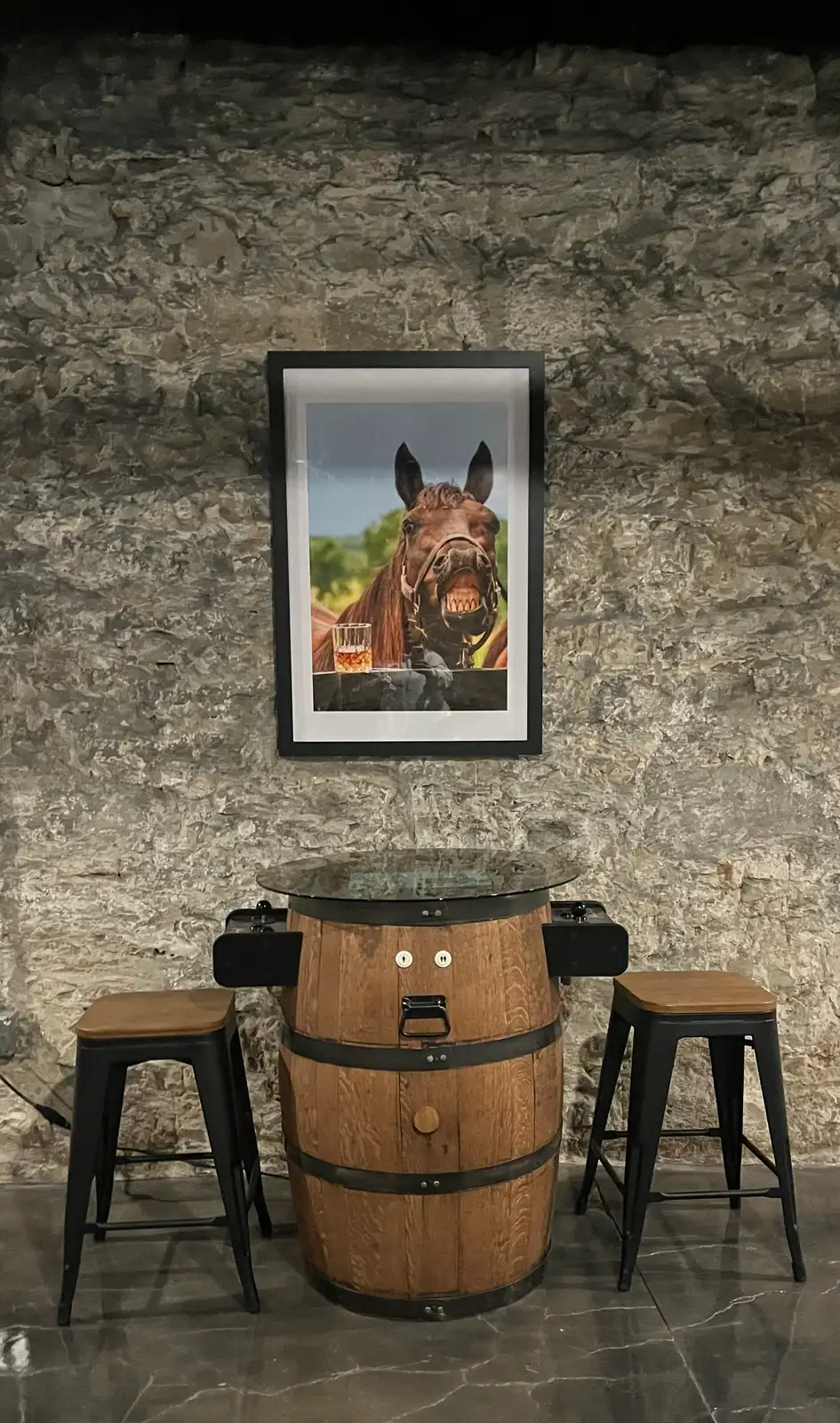 - A tastefully and thoughtfully designed equestrian and bourbon-themed interior.