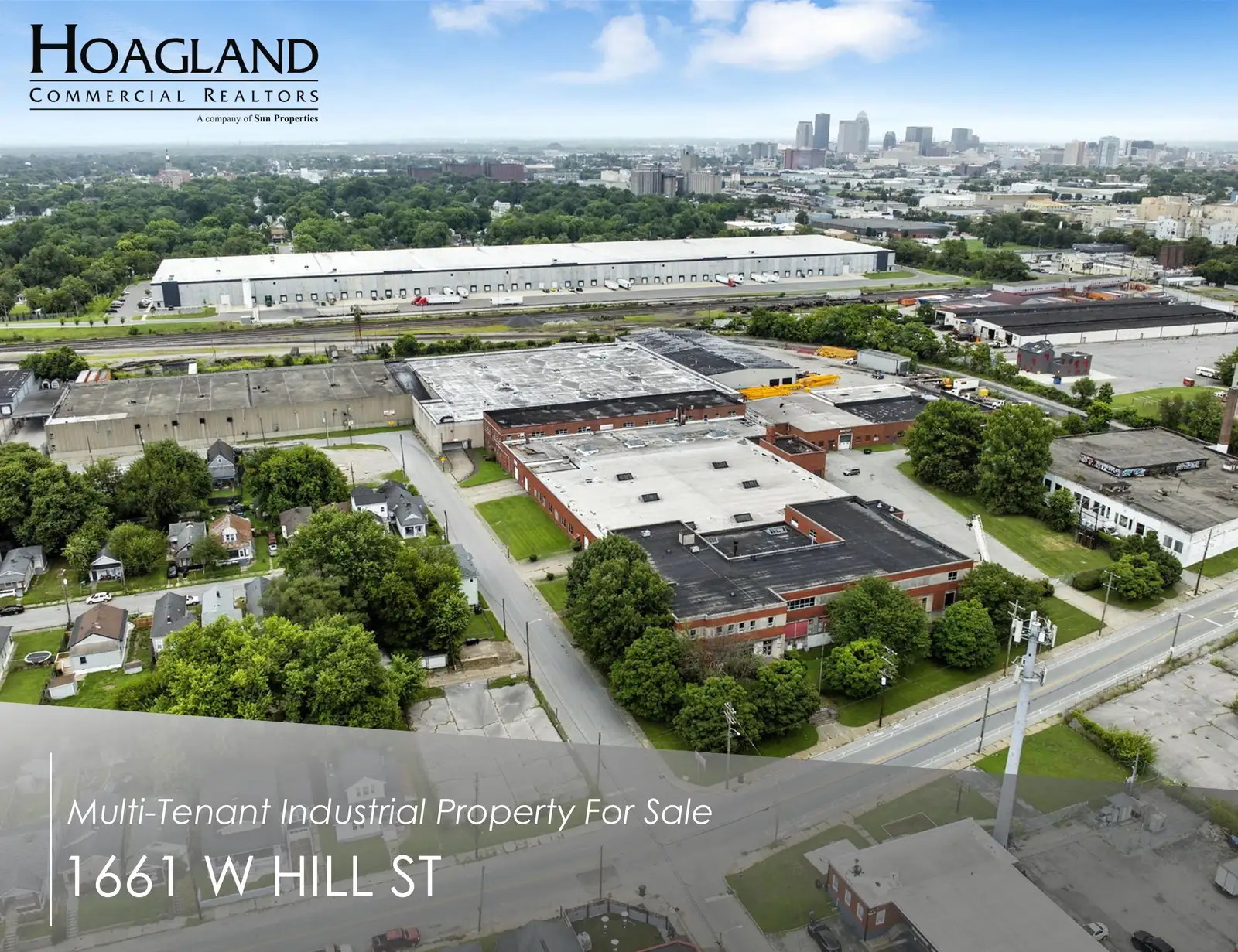 Hoagland Commercial is pleased to present for sale the opportunity to acquire an value-add industrial distribution facility in the heart of Louisville, 1661 W Hill Street. Formerly a Coca Cola bottling and distribution facility, this multi-tenant asset is located south of downtown Louisville and consists of 341,073 SF +/- situated on a completely secure 13+ acre lot.