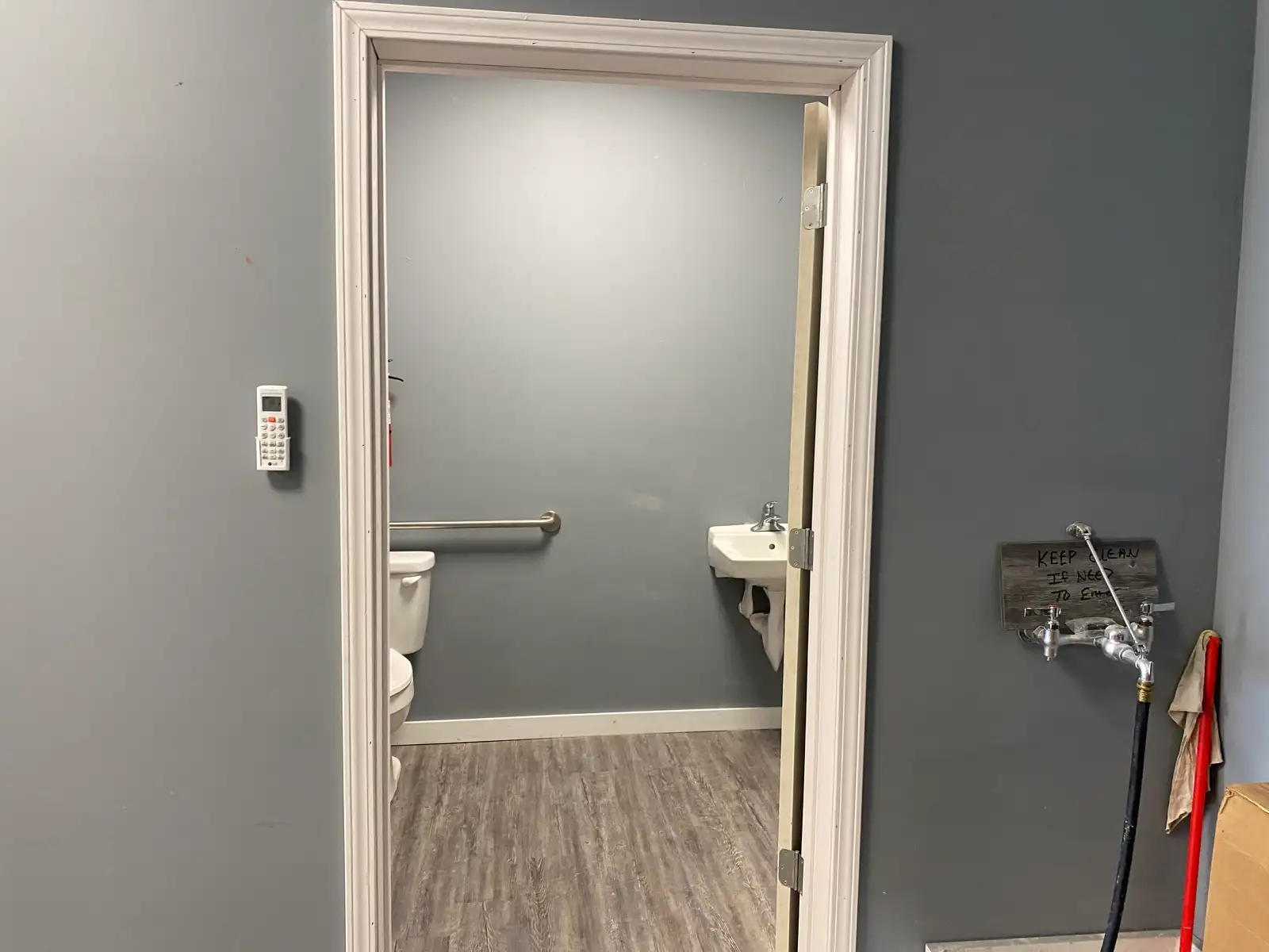 Suite 116: Small retail space with built in shelving, and a restroom. This can be combined with Suite 110 for additional SF.