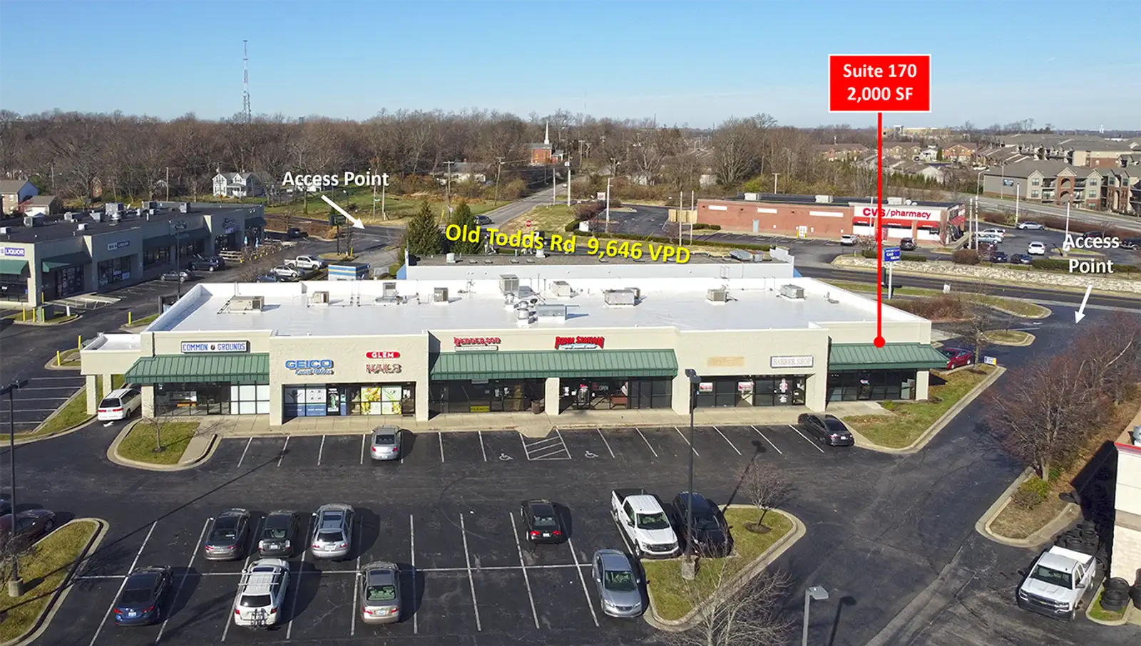 Leasing opportunities at Todds Center in Lexington. The center is 30,418 SF with a great tenant mix, centrally located at the corner of Man O' War Boulevard, Liberty Road and Old Todds Road.