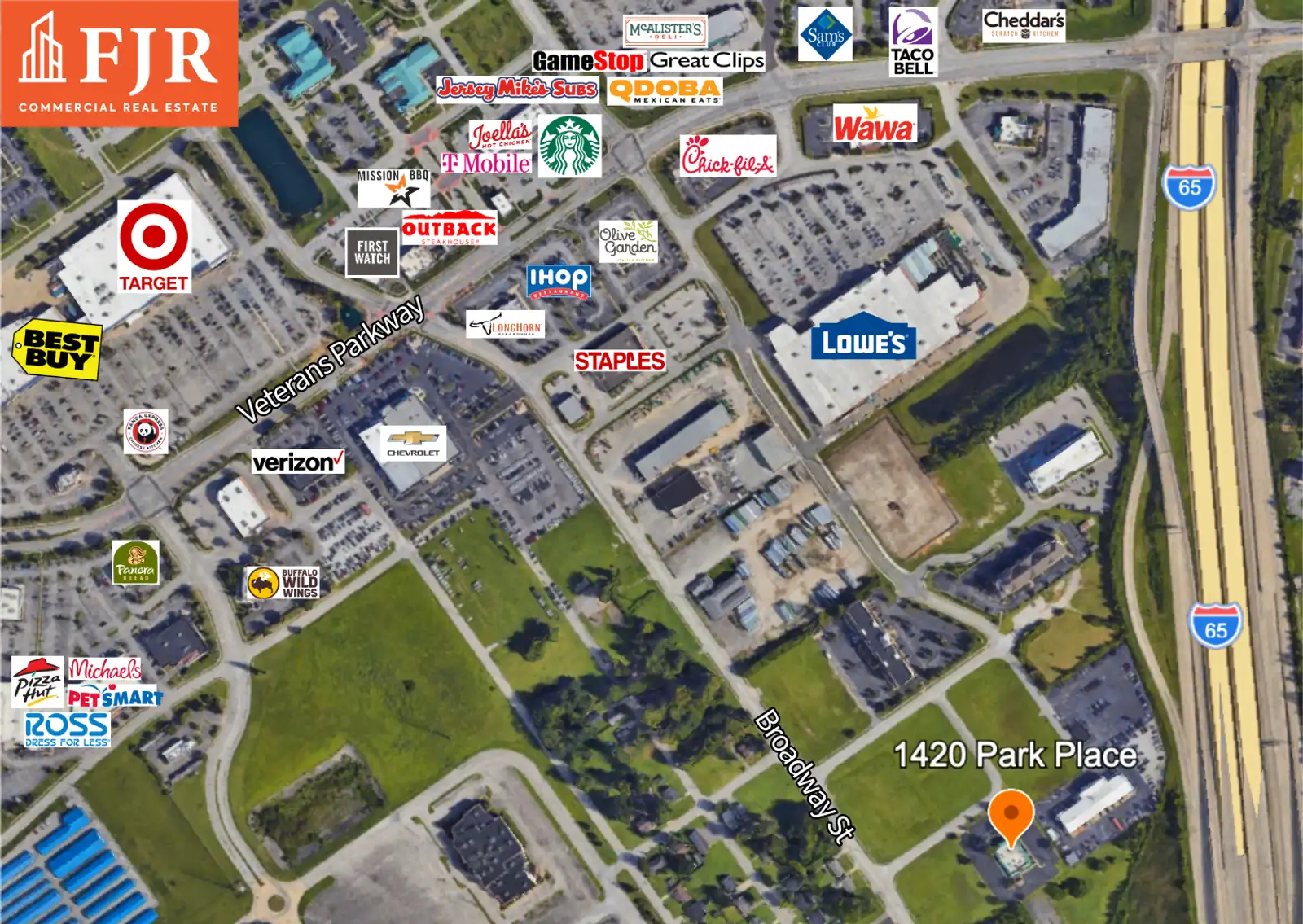 Former Outback Steakhouse located between Veterans Parkway and Lewis and Clark Parkway. Two blocks from I-65 with easy access.