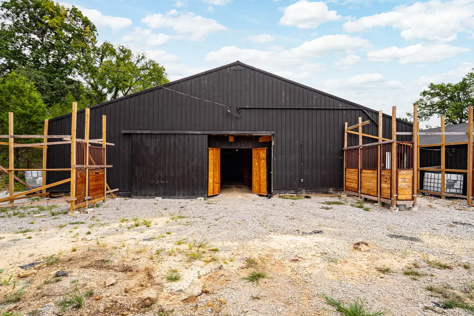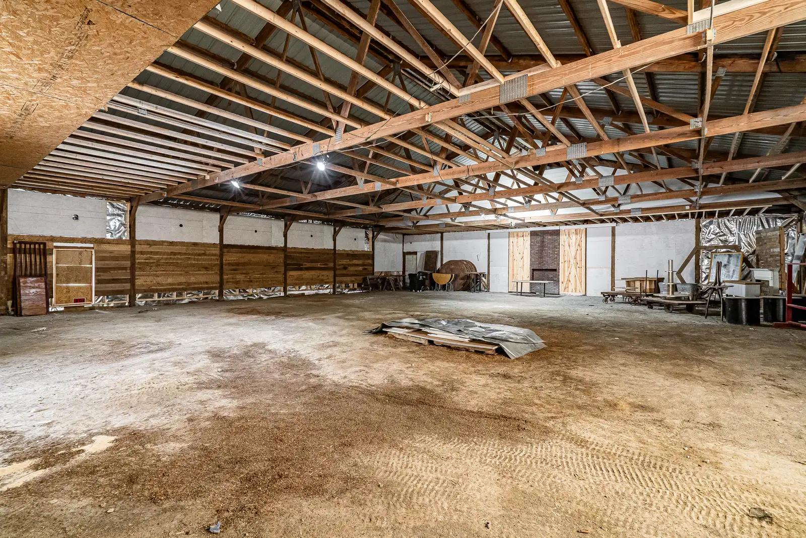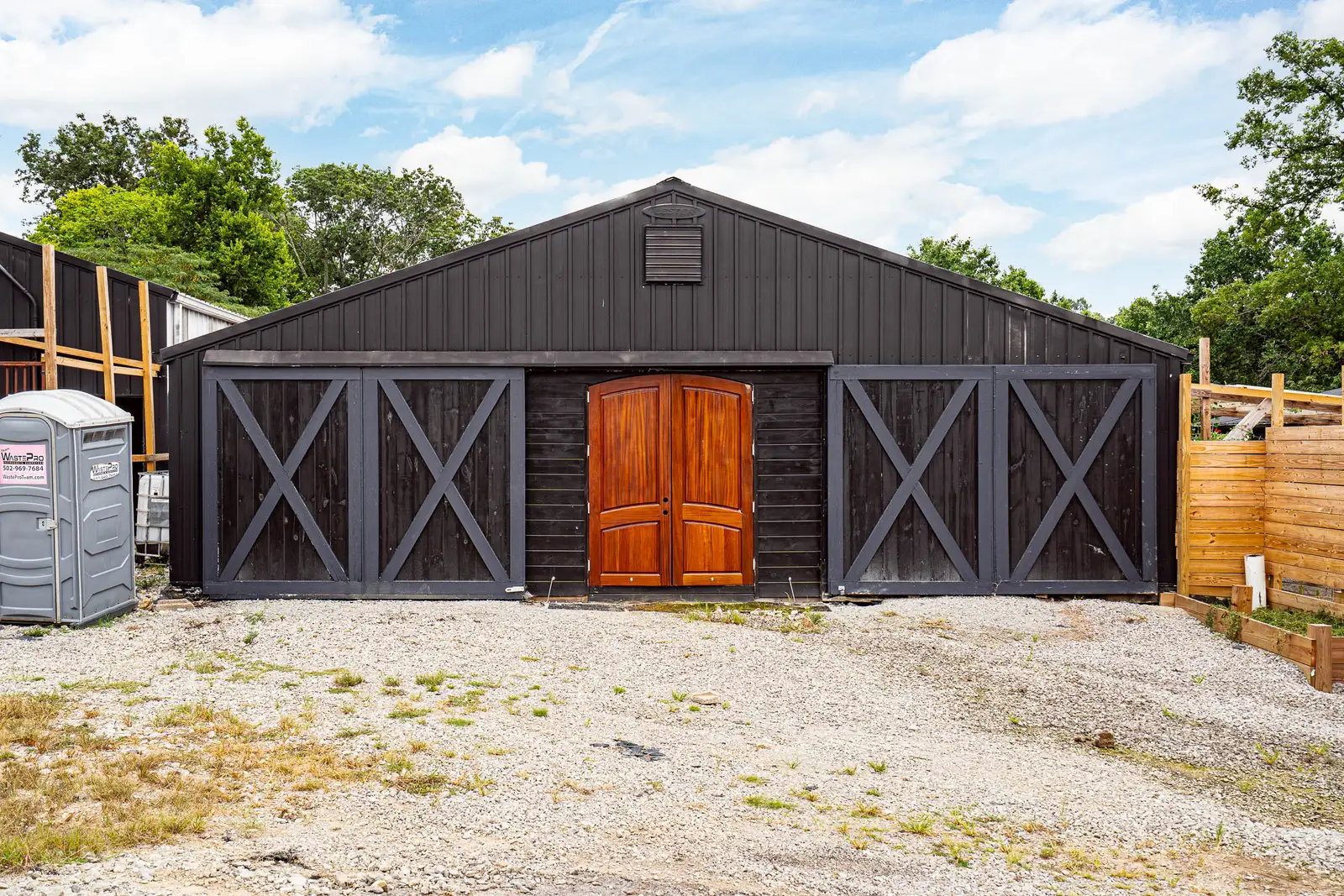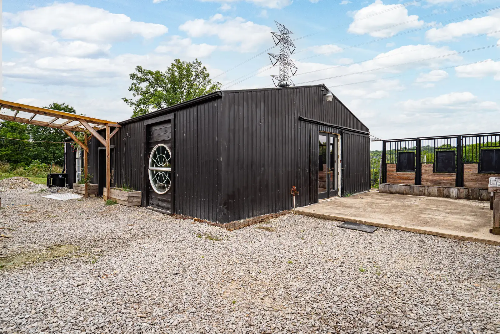 6.19 acres in a prime Jefferson County location with approximately 157 feet of creek frontage on scenic Floyds Fork. Formerly under development as The Stables of Floyds Fork, this exceptional property blends equestrian, agricultural, and agritourism potential—just 20 miles from Churchill Downs and 20 miles from Jim Beam Distillery along Kentucky's famed Bourbon Trail. The property includes three large barns totaling over 12,000 sq ft and offers remarkable versatility—ideal for a private estate, horse property, hobby farm, or boutique event venue. Barn 1 is a 60x100 covered arena, originally a riding ring, roughed in for an event hall and prep spaces, and connected via enclosed walkway to Barn 2 (the former stall barn). Barn 2 once housed 15+ stables and was reimagined as an indoor
