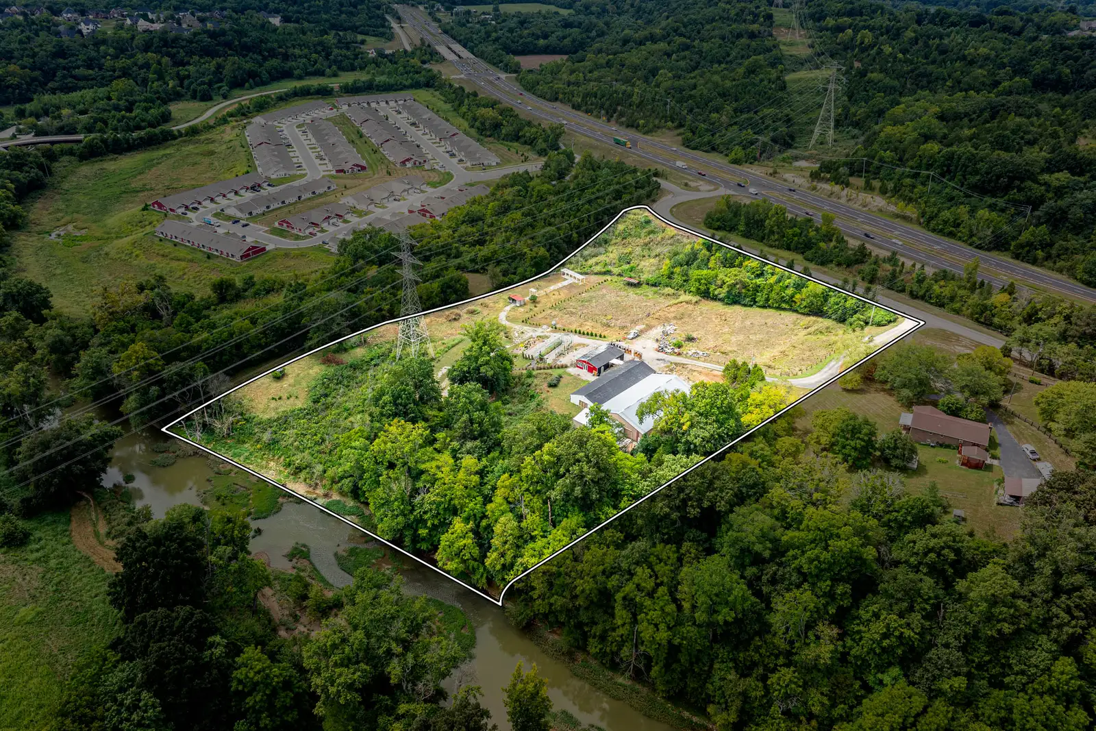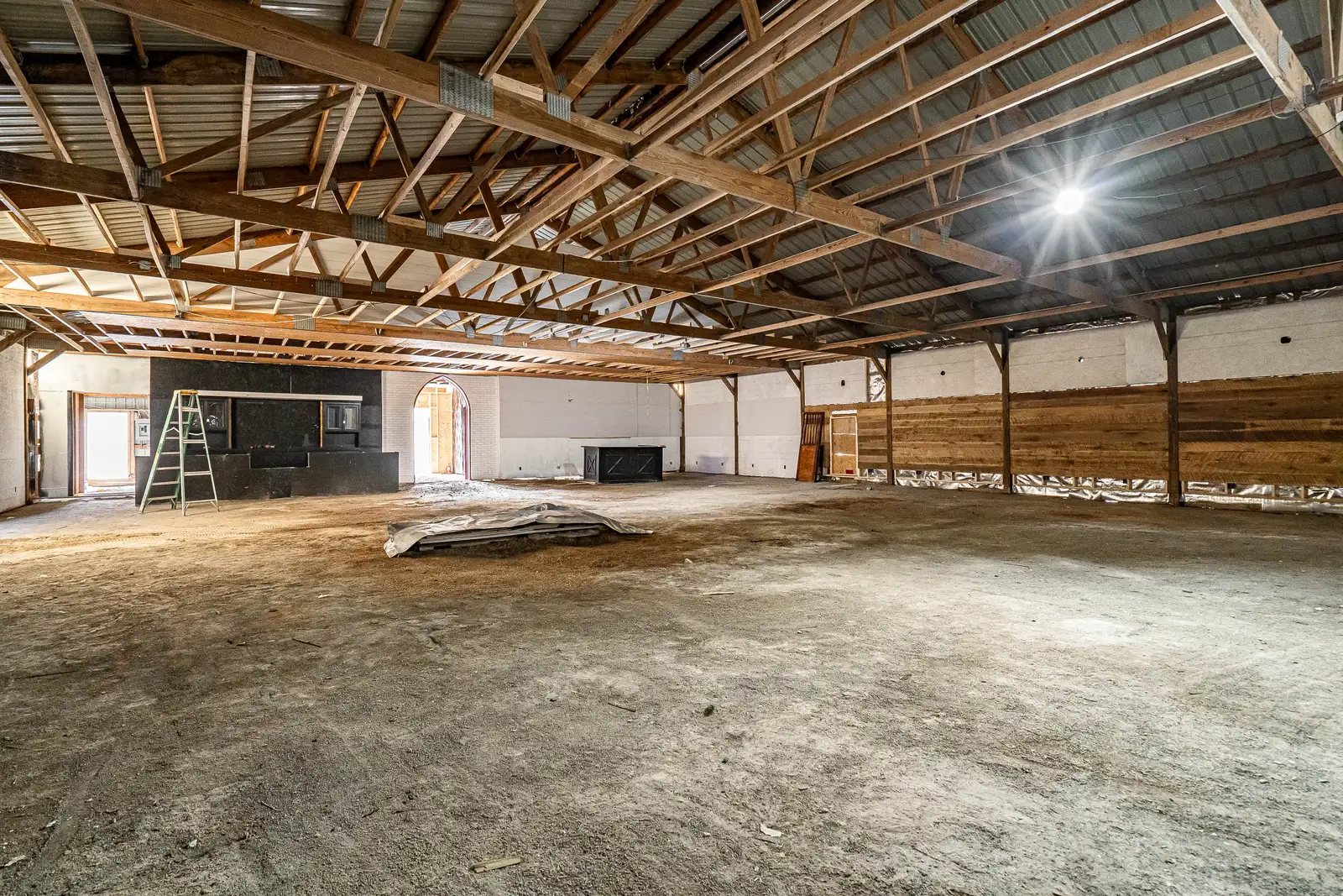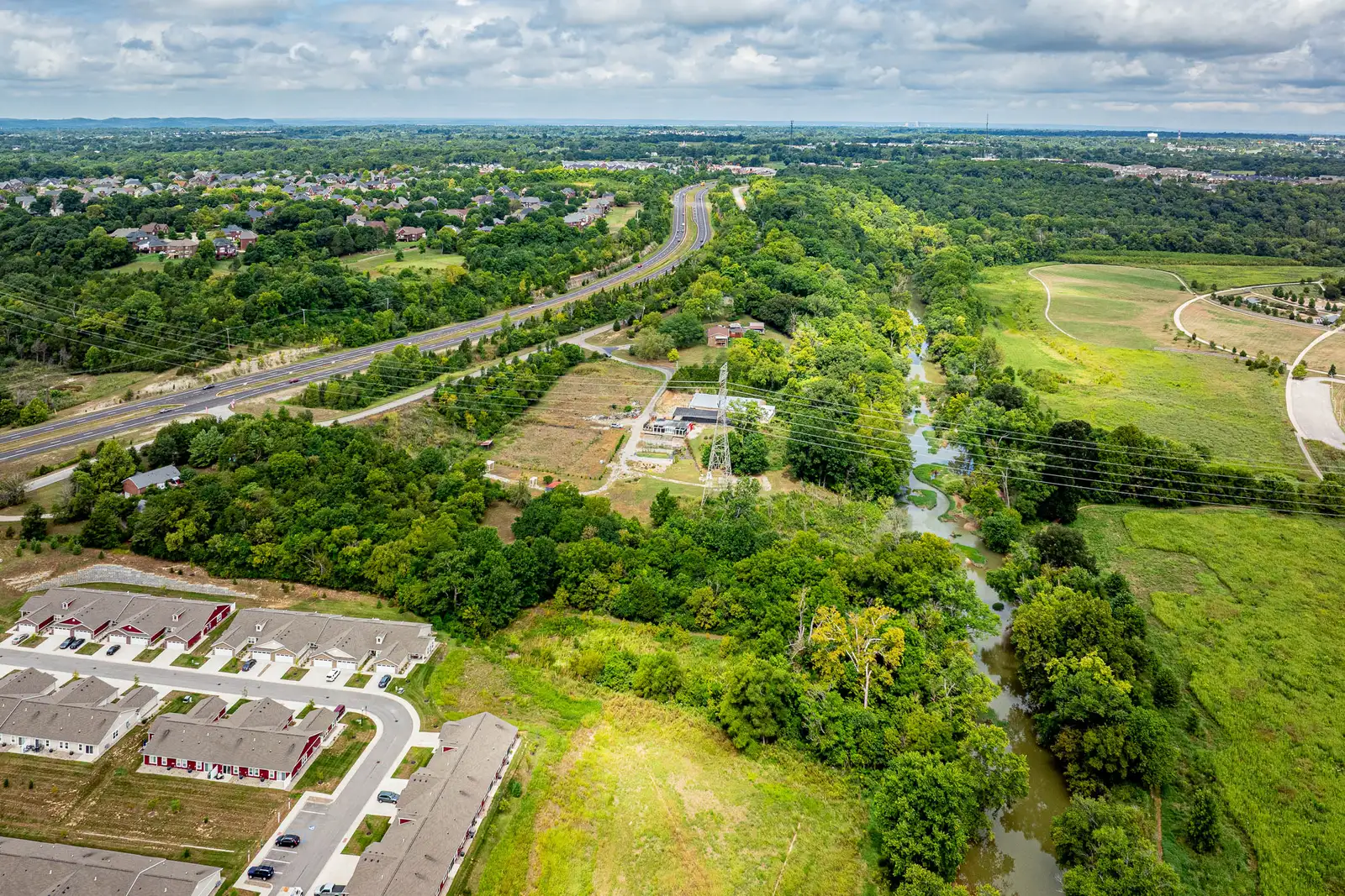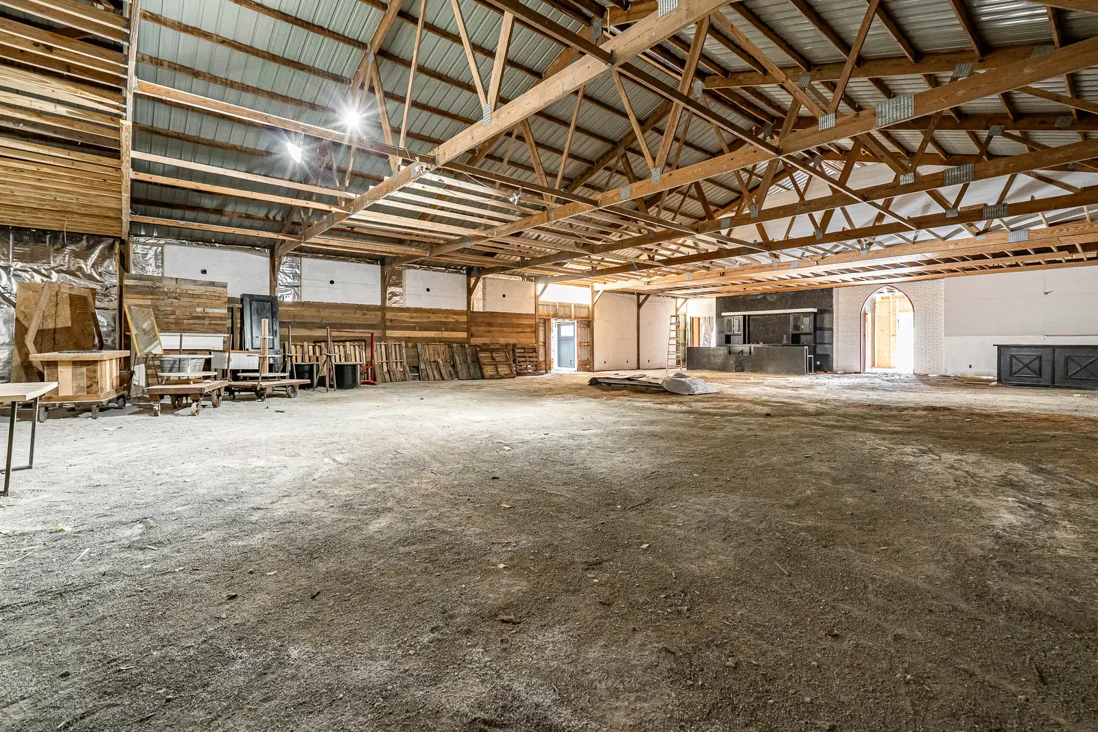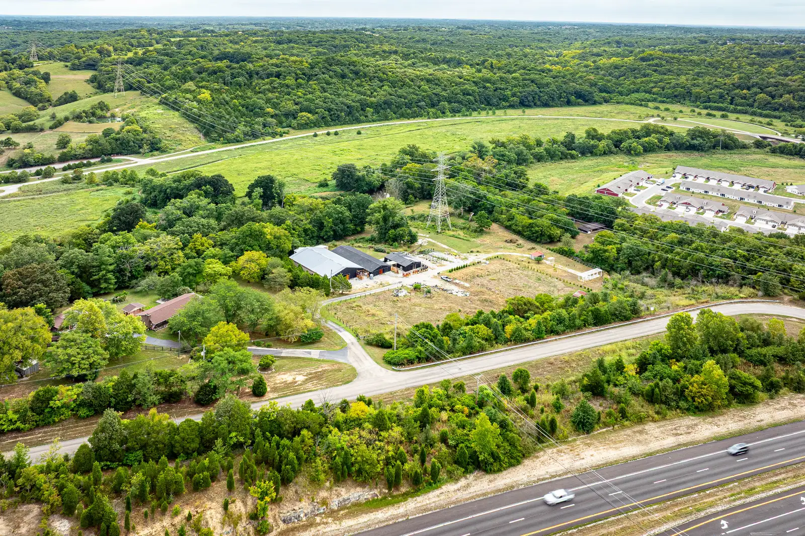 6.19 acres in a prime Jefferson County location with approximately 157 feet of creek frontage on scenic Floyds Fork. Formerly under development as The Stables of Floyds Fork, this exceptional property blends equestrian, agricultural, and agritourism potential—just 20 miles from Churchill Downs and 20 miles from Jim Beam Distillery along Kentucky's famed Bourbon Trail. The property includes three large barns totaling over 12,000 sq ft and offers remarkable versatility—ideal for a private estate, horse property, hobby farm, or boutique event venue. Barn 1 is a 60x100 covered arena, originally a riding ring, roughed in for an event hall and prep spaces, and connected via enclosed walkway to Barn 2 (the former stall barn). Barn 2 once housed 15+ stables and was reimagined as an indoor