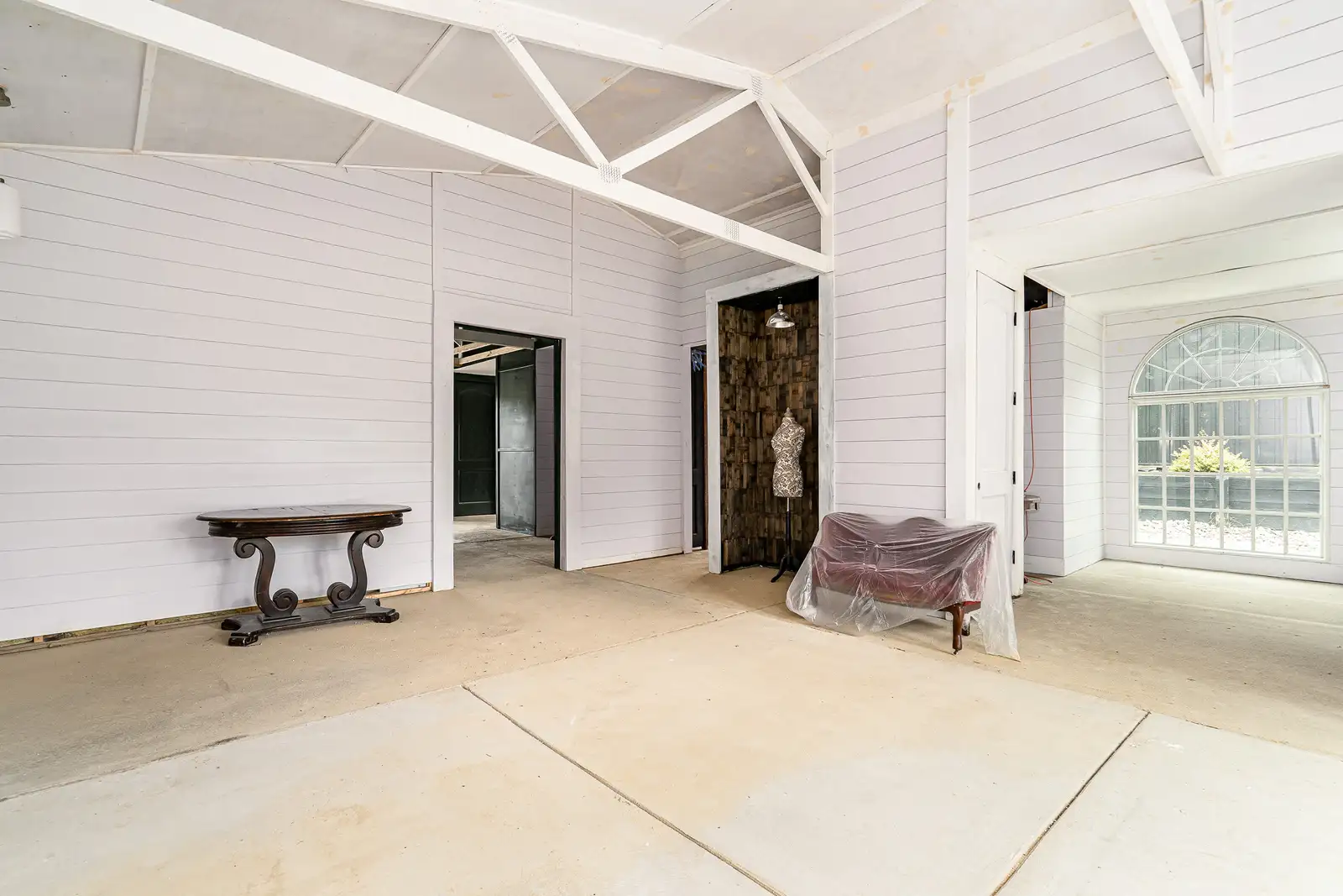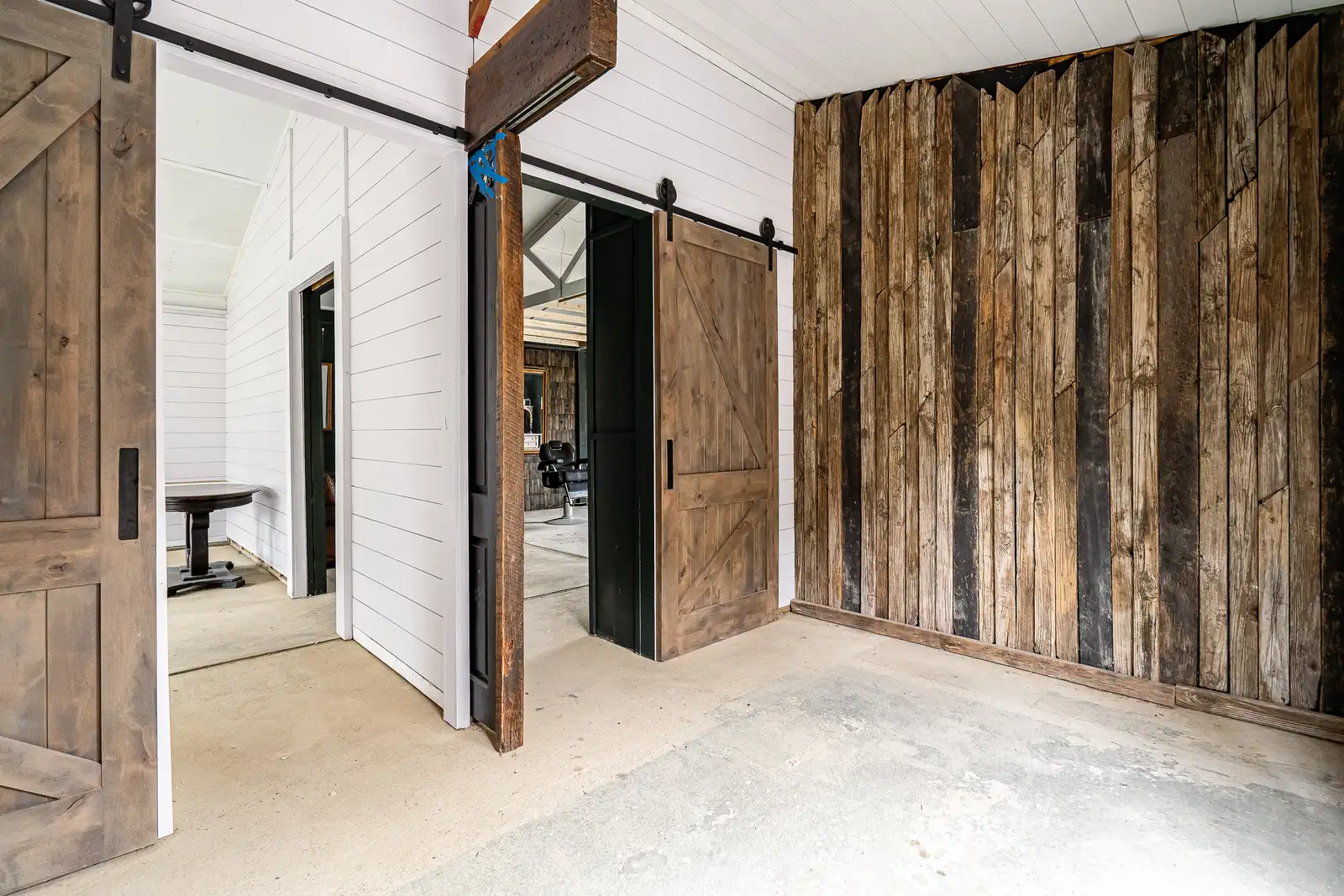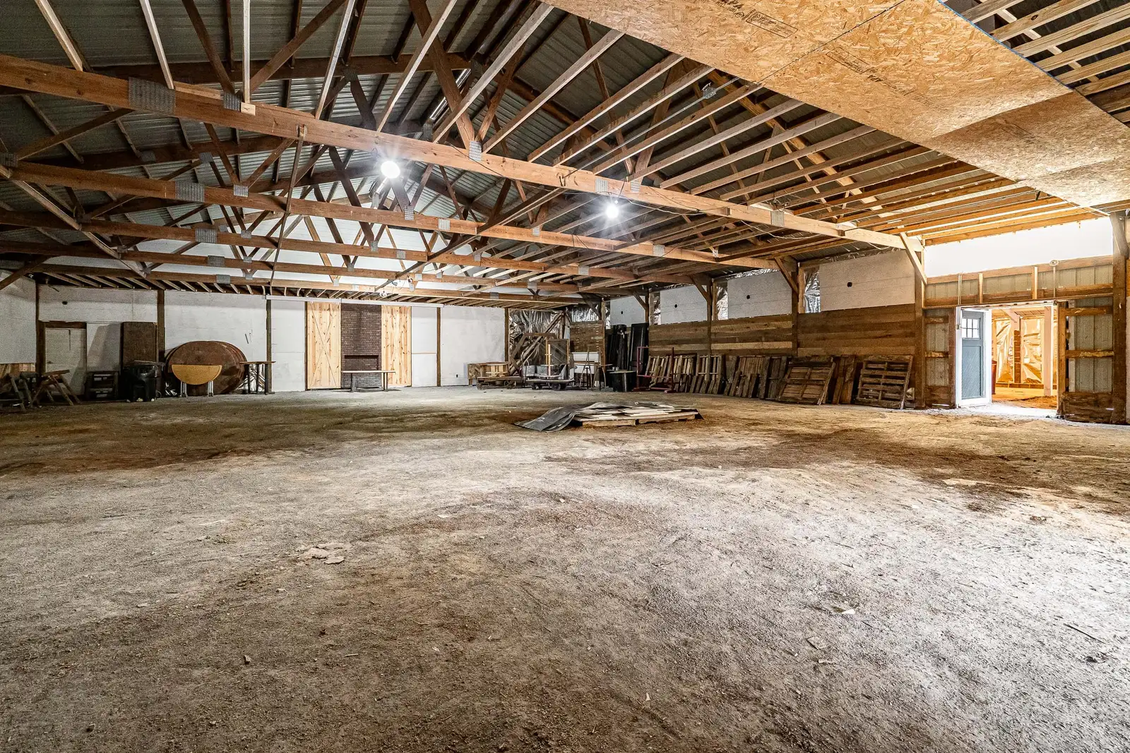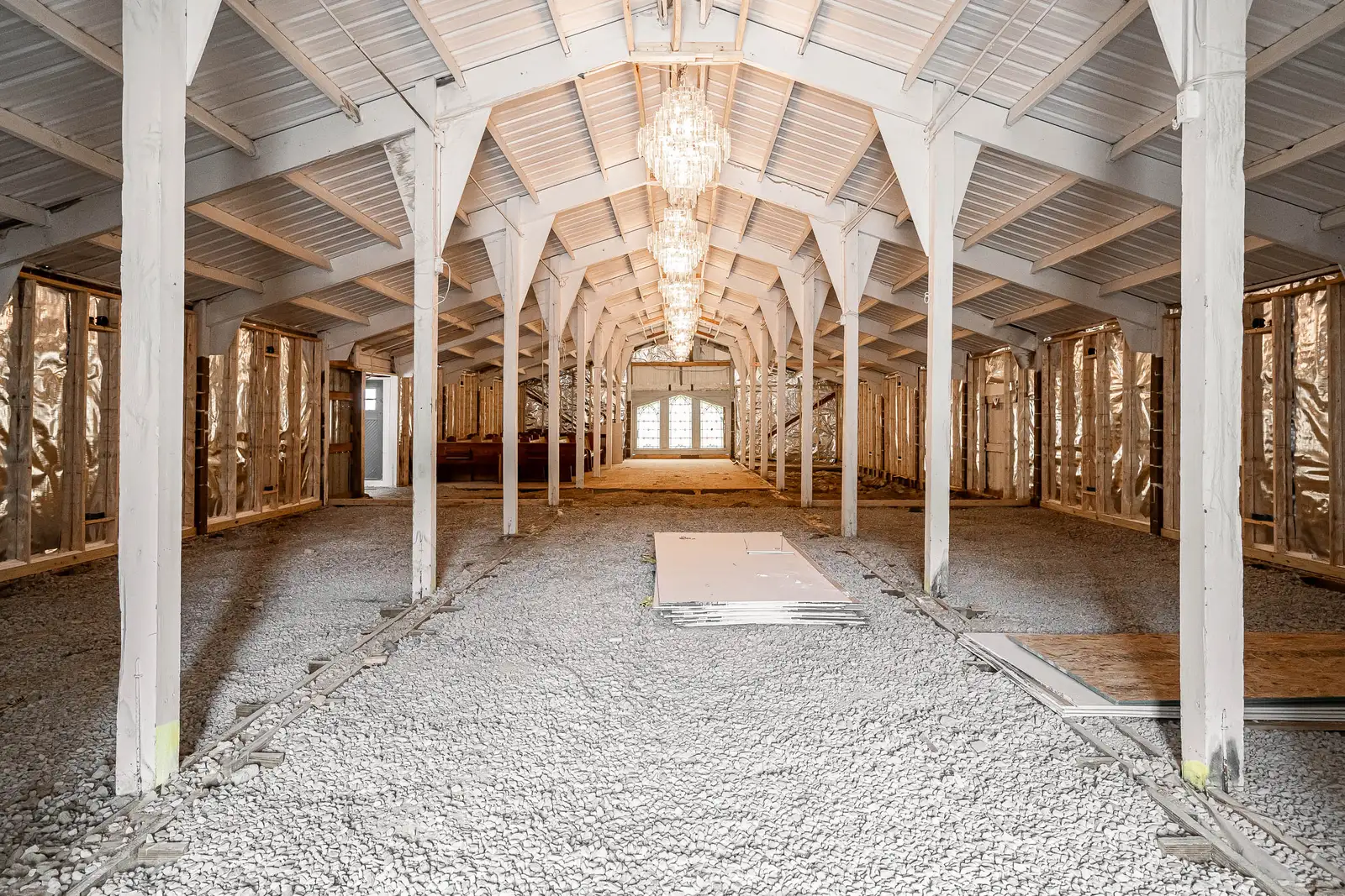 6.19 acres in a prime Jefferson County location with approximately 157 feet of creek frontage on scenic Floyds Fork. Formerly under development as The Stables of Floyds Fork, this exceptional property blends equestrian, agricultural, and agritourism potential—just 20 miles from Churchill Downs and 20 miles from Jim Beam Distillery along Kentucky's famed Bourbon Trail. The property includes three large barns totaling over 12,000 sq ft and offers remarkable versatility—ideal for a private estate, horse property, hobby farm, or boutique event venue. Barn 1 is a 60x100 covered arena, originally a riding ring, roughed in for an event hall and prep spaces, and connected via enclosed walkway to Barn 2 (the former stall barn). Barn 2 once housed 15+ stables and was reimagined as an indoor