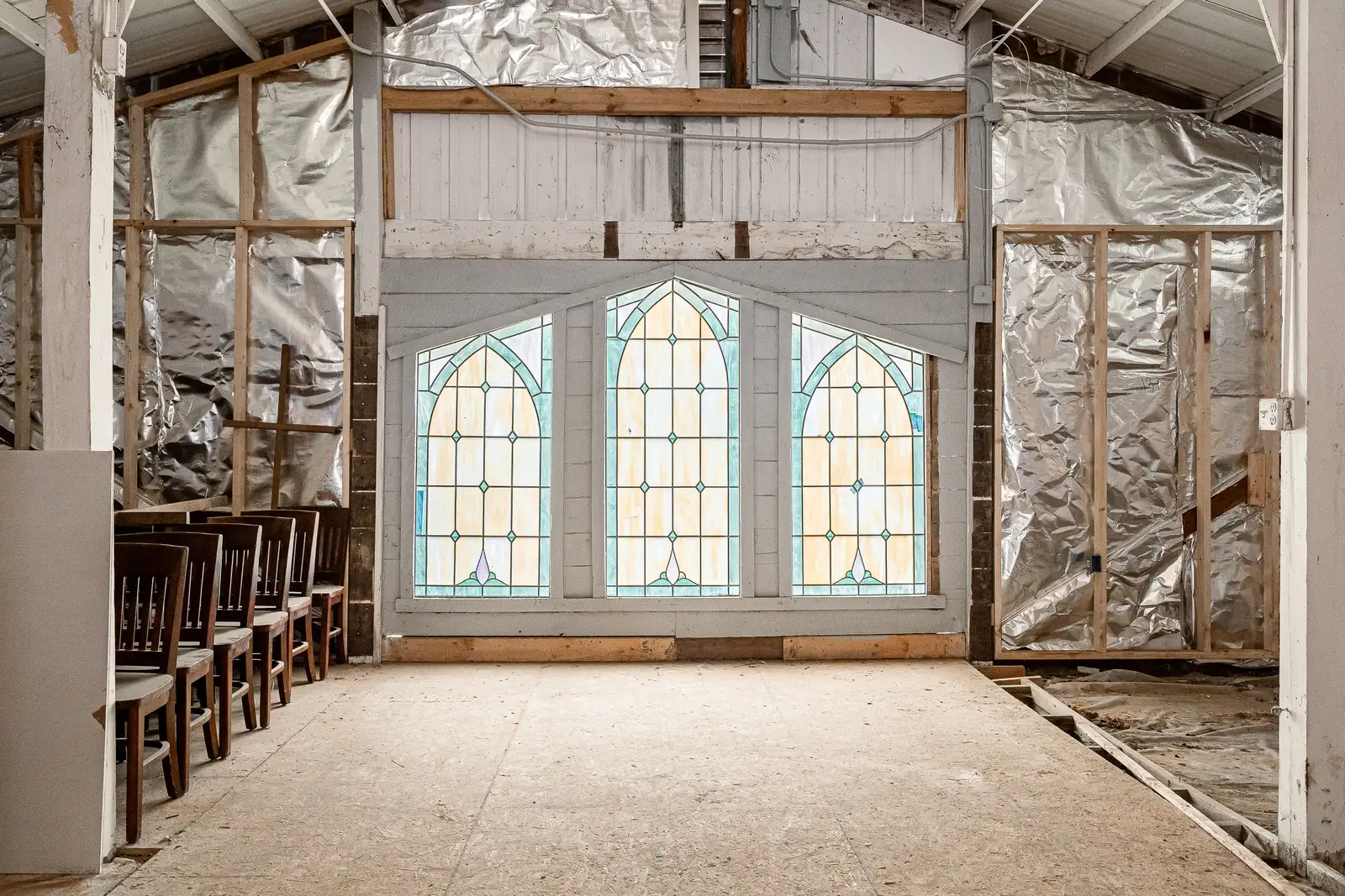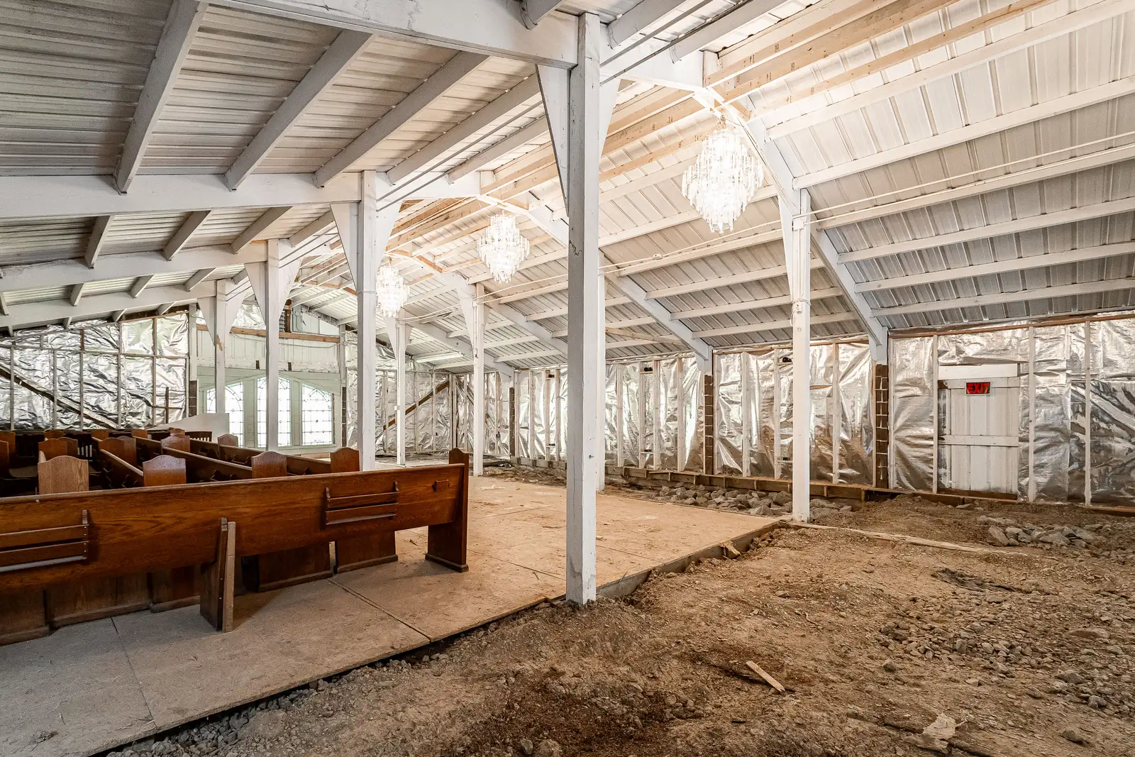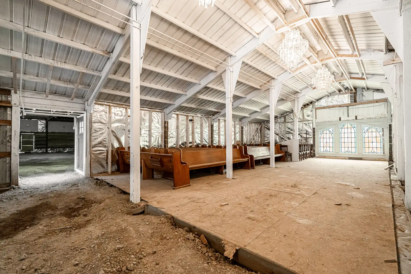 chapel with stained glass, antique pews, and dressing suitesbut could easily be restored to a full stable barn. Barn 3, formerly a hay barn and equipment storage, has been roughed in as dual lounge/prep suites, offering abundant storage and functional flexibility. One of these barns could also serve as the perfect starting point for a barndominium conversion with scenic farm and creek views. The acreage features approximately 157 feet of direct waterfront access to Floyds Fork (perfect for kayaking, fishing, or small watercraft recreation), plus a tiered photo garden, ivy-covered pavilion, and open outdoor areas ideal for recreation, ceremony, or relaxation. A potential buildable site of nearly ½ acre near the barns provides even more opportunity. Outdoor enthusiasts will appreciate the proximity to The Parklands and access to the Louisville Loop offering eventually 100+ miles of hiking, biking, and shared paths. Zoned RR, this property offers the perfect foundation for a mini farm, horse training facility, bourbon-country retreat, or farm-to-table destination. The previous Conditional Use Permit for event operations has expired but may be re-applied for depending on your vision. Located across Floyds Fork from The Parklands, this one-of-a-kind property combines natural beauty, accessibility, and rural charm in one of Louisville's most sought-after corridors near Bardstown Road where horse country meets the Bourbon Trail.